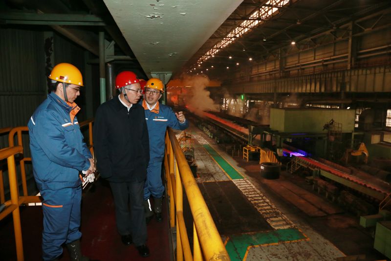 在宝山,汤涛副部长一行参观了宝钢热轧厂生产线、世界技能大赛国家集训基地、宝钢人才开发院创意实践中心,并在王军国家级技能大师工作室与技能带头人座谈。