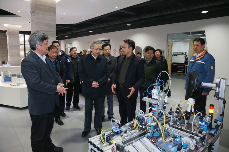 在浦东金桥,汤涛副部长一行参观了上海电气集团高技能人才培养基地数控实训中心、工业机器人实训中心、生产制造技术模拟实训室、数控装调维修实训室、电子沙盘实训室、模拟仿真计算机房等,并听取了上海电气李斌技师学院产学结合、校企合作培养技能人才工作开展情况,以及李斌技能大师工作室建设成果。